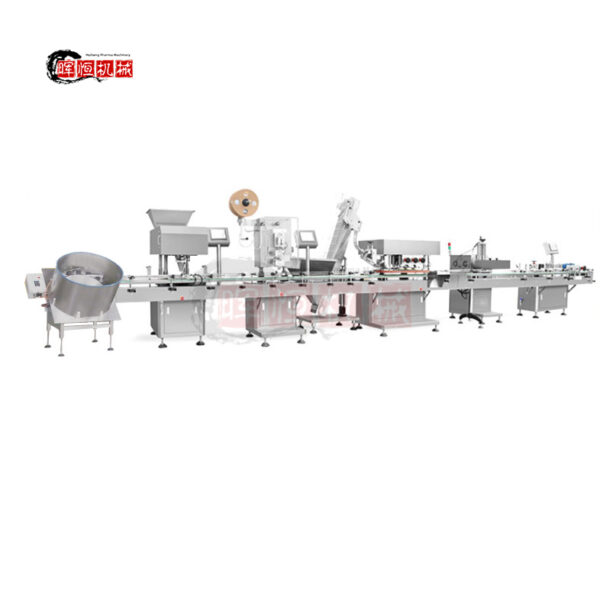 The automatic counting and bottling line is a complete solid granule product packaging line that can count hard capsules, soft capsules, tablets, augers, snack foods, hardware, etc., and has a wide range of applications. The whole line consists of a bottle unscrambler, an electronic counting machine, a desiccant insertion machine, a cotton insertion machine, an aluminum foil sealing machine, a capping machine, and a labeling machine. All machines can be operated synchronously after connection and ensure stability. Each machine of this production line can adjust quickly and use independently. And the whole production line can assemble and separate easily and quickly. The outer frame of the machine is made of 304 stainless steel, and the contact part is made of 316 stainless steel, which meets GMP requirements.
