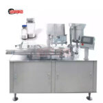 Automatic vial powder filling and capping machine is suitable for distributing powder products for medium and large factory,such as antibiotics, biochemical with automatic stoppering function. This machine is suitable for antibiotic glass bottle, rubber bottle stopper, and out cap capper, machine can be customed according to different bottle size and cap size.