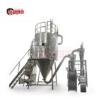 - High speed drying. After liquid raw material being sprayed, its’ surface area will be increased greatly. With higher drying efficiency, 95%-98% of water could be evaporated in a few seconds. Drying time is very short, it is suitable for heat sensitive raw material