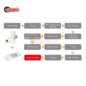 This holistic approach to automation enhances productivity and minimizes the risk of human error, resulting in Non-PVC soft bags of the highest quality. The synchronized coordination of film feeding, printing, bag making, filling, and sealing exemplifies the cutting-edge capabilities of HUIHENG PHARMA’s production line, positioning it at the forefront of modern manufacturing in the healthcare industry.