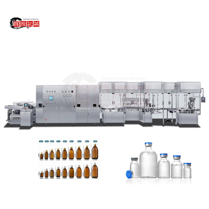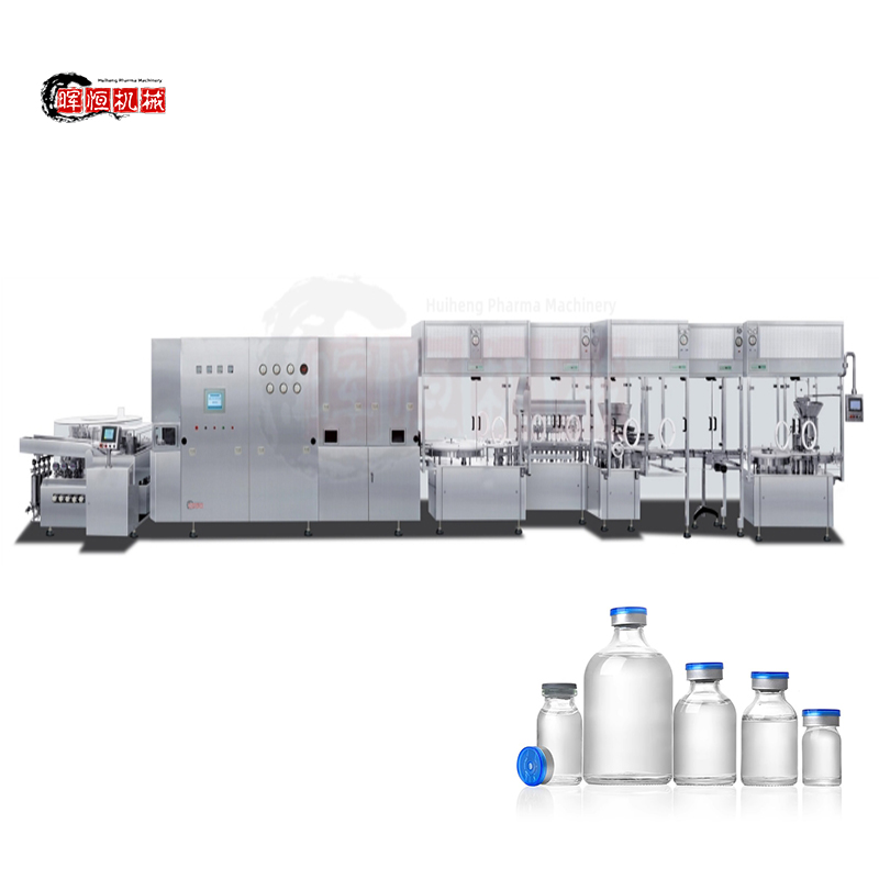 - The compact line realizes single linkage, continuous operation from washing, sterilizing & drying, filling & stoppering and capping. The whole production process realizes cleaning operation; protects products from contamination, meets the GMP production standard.